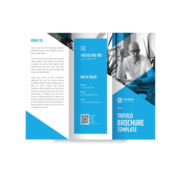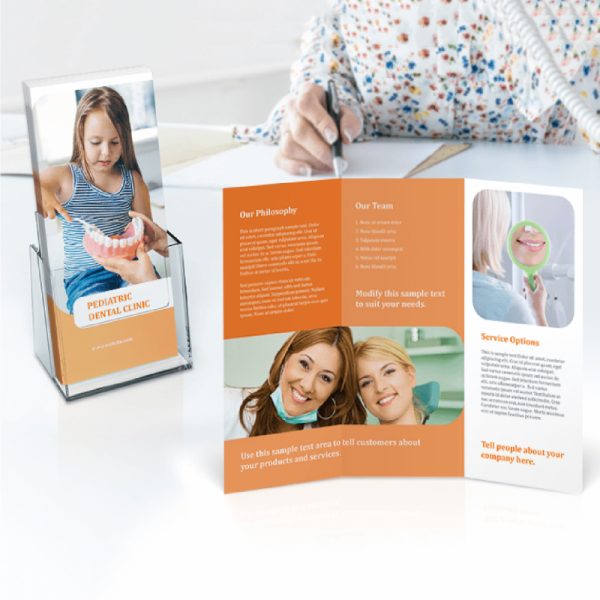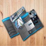 Brochure impreso a color en papel couche 80 ó bond, medida 8.5×11 pulgadas impresos a ambos lados doblado a dos o tres cuerpos.