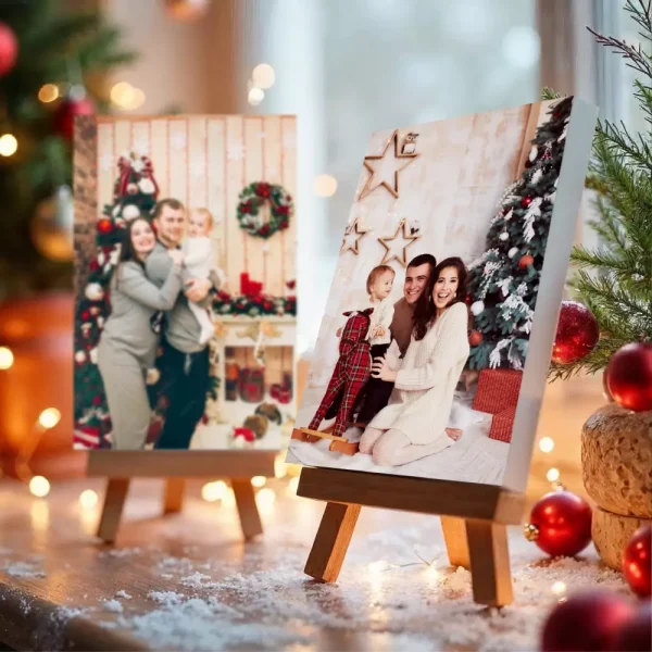 Promoción de 2 canvas 8×10 pulgadas con marco de madera, sin caballetes. Puedes incluir mini caballetes por un costo extra de $5.00.