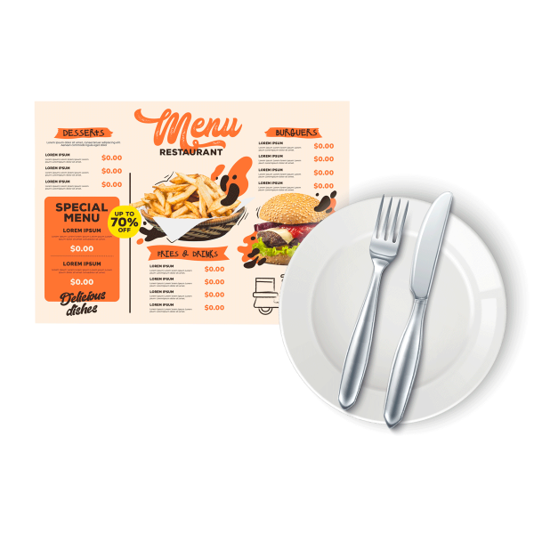 Promoción de 250 manteles individuales de papel 12×18 pulgadas con impresión a color. Puedes utilizar imprimir tus menus con estilo único. También contamos con diseños divertidos para cada temporada que puedes seleccionar para entretener a los niños o puedes enviarnos cualquier imagen que deseas imprimir.