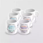 6 tazas blancas personalizadas con capacidad para 11 onzas.