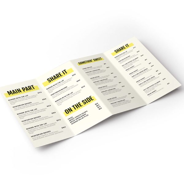 Afiche 13×40 pulgadas (32.5×101.50 cm), pedido mínimo 2 unidades. Impresión a color a una cara (tiro) en papel foldcote 12.