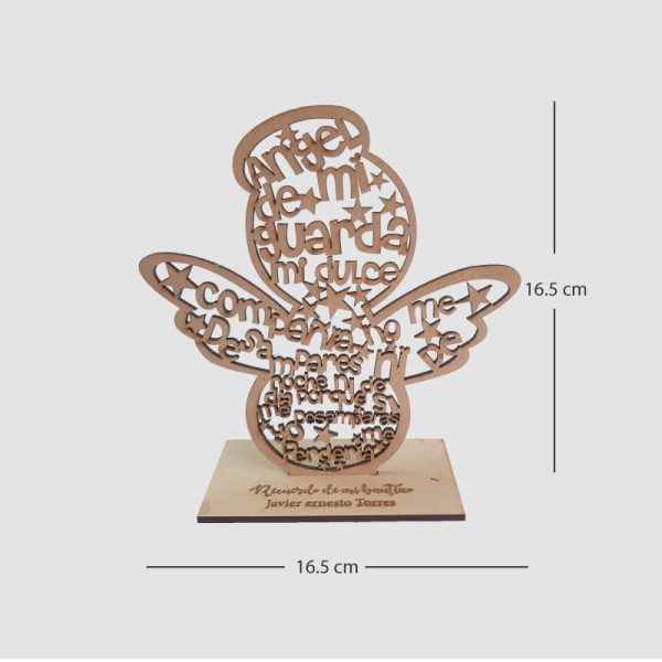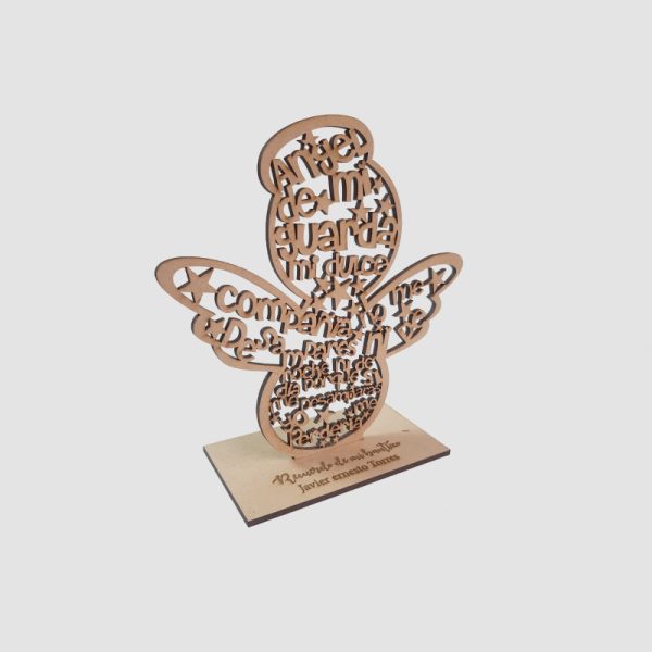 Hermosa figura con la oración del ángel de la guarda, puedes colocar grabado laser en la base para personalizar con nombre o dedicatoria.