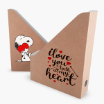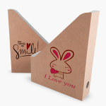 Archivador personalizado de 30×23×7 cms útil para organizar documentos o revistas. Usamos material reciclable, puedes elegir el color natural (café) o en color blanco.