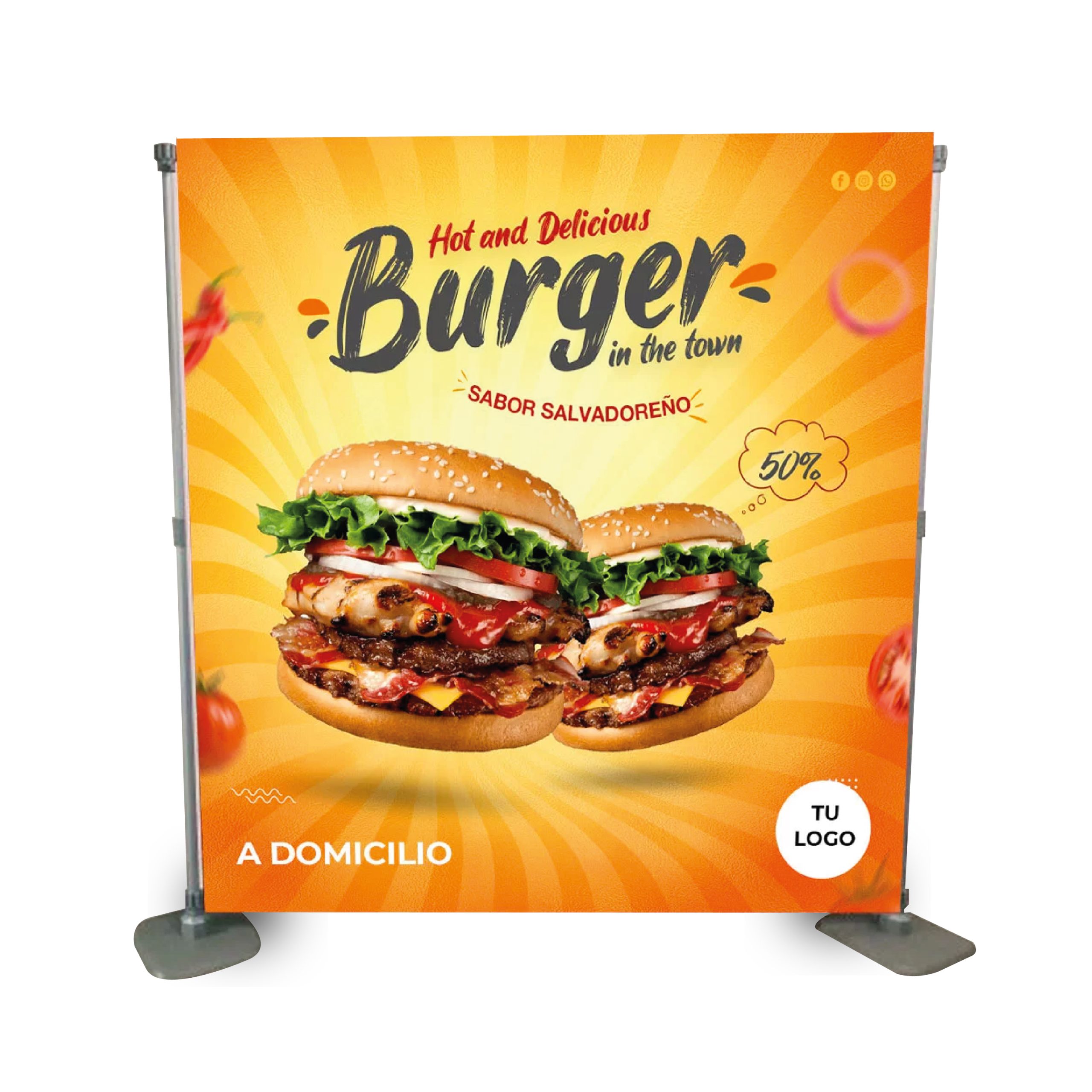 Ideal para montar eventos y exhibir tu marca o empresa, es oportunidad para posicionamiento con la impresión de un banner llamativo, captarás la atención del cliente y llegarás a más compradores potenciales.