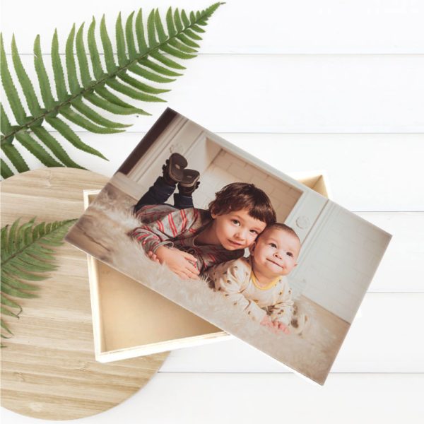 Regala esta hermosa y útil caja de madera con la impresión personalizado de una fotografía, puedes agregarle texto. Medida 23x15x5cm. Precio de promoción incluye IVA si realizas la compra en línea.