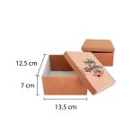 Caja personalizada tipo regalo de 13.5×14.5×7 cms fácil de abrir, puedes colocar una imagen o una frase en la tapadera. Usamos material reciclable, puedes elegir el color natural (café) o en color blanco.