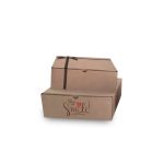 Caja personalizada tipo regalo de 24x24x9 cms fácil de abrir, puedes colocar una imagen o una frase en la tapadera o en los laterales. Usamos material reciclable, puedes elegir el color natural (café) o en color blanco.