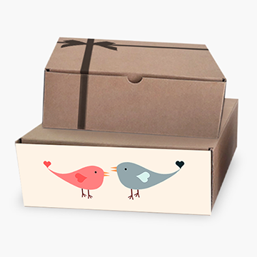Caja personalizada tipo regalo de 24x15x10 cms fácil de abrir, puedes colocar una imagen o una frase en la tapadera o en los laterales. Usamos material reciclable, puedes elegir el color natural (café) o en color blanco.