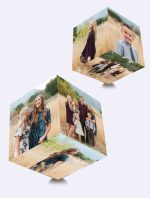 ¡Una forma original de exhibir tus fotos!, es un cubo de madera de tamaño 4×4 pulgadas en el que se adherirán 6 imágenes o fotografías, una por cada cara. Puede ser el regalo original y significativo para el cumpleaños de un amigo, aniversario de novios, graduación, navidad o para impresionar a los clientes con tu marca y productos.
