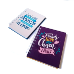 Dúo de libretas 1/4 de carta personalizadas con pasta dura laminada anillada y 60 hojas rayadas. Puedes personalizar ambos lados con la imagen que tú gustes. Ideal para regalos o celebraciones.