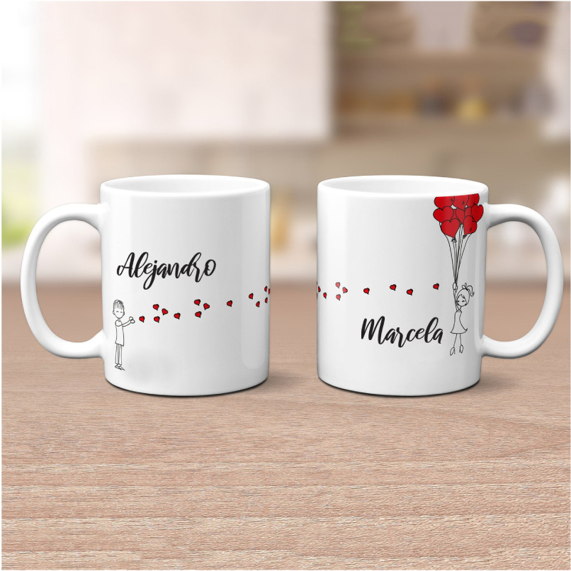 Promoción de dos tazas blancas personalizadas con el diseño que desees, agrega tu foto favorita y frase. Son tazas con capacidad para 11 onzas.