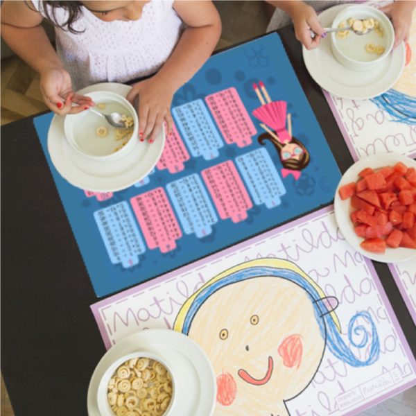 Individual personalizado impresos a color para usar en la clase, mide 15×11 pulgadas en PVC de 3mm con impresión a color. Puedes colocar la imagen que desees o seleccionar de nuestra galerias de opciones escolares. En la zona anaranjada sube la imagen o el texto que deseas colocar en el individual.