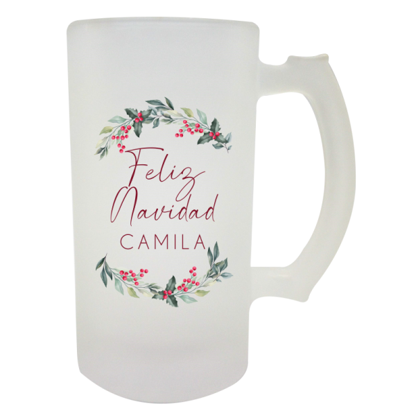 Jarra de vidrio nevada personalizada de 16 onzas.