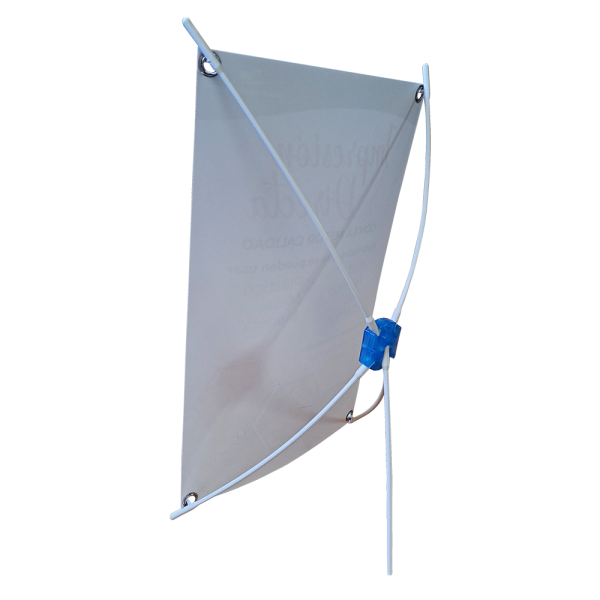 Banner con estructura tipo «mini araña» medidas 27.5 x 40 cm. Son útiles para captar la atención de clientes potenciales y tiene la ventaja de ser desmontable y facil de colocar en escritorios o mesas. El precio incluye la impresión y la estructura.