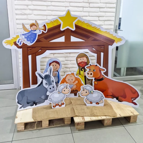 - Incluye 9 piezas: pesebre, San José, María, el niño Jesús, buey, burro, 2 ovejas, ángel y estrella.
