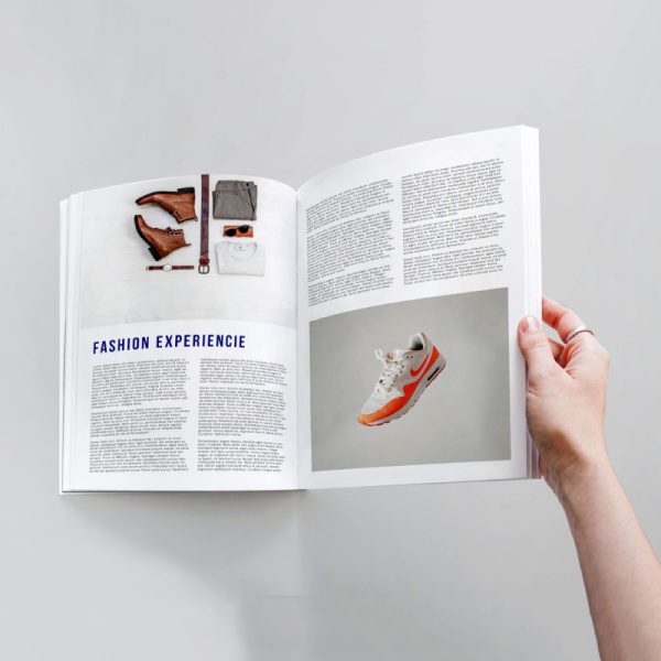 Imprime tu revista o catálogo de productos tamaño 8.5×11 pulgadas a full color de 16 páginas en papel couché, grapa caballete.