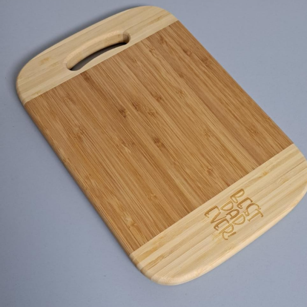 Tabla de madera para picar alimentos de 30×20 cm, con grabado personalizado, precio de promoción por tiempo limitado hasta agotar existencias.