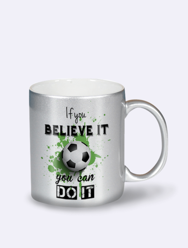 Taza personalizada de color plateado con el diseño que desees, impresos a full color y en excelente resolución, se imprimen por medio de un proceso llamado sublimación (impresión por transferencia térmica), resistente al calor y a los líquidos. La imagen a imprimir debe ser de color sólido y oscuro para que resalte el color de la taza, como se muestra en la galería de fotos.