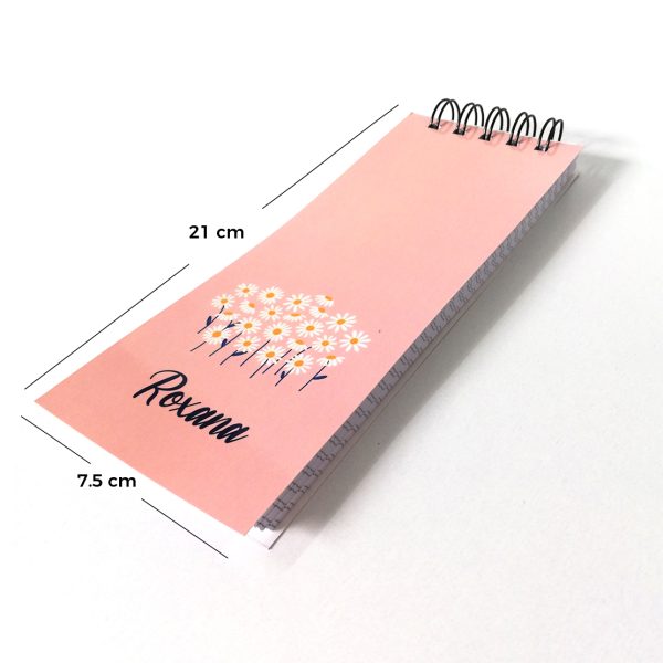 La promoción incluye 3 libretas personalizadas tamaño 1/3 carta, medidas 7.5 cm de ancho x 21 cm de alto, para tomar notas o escribir tus ideas.